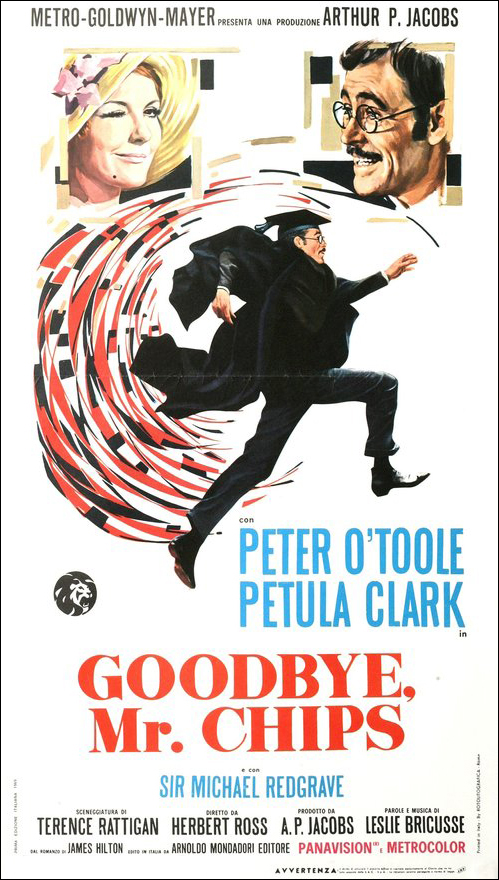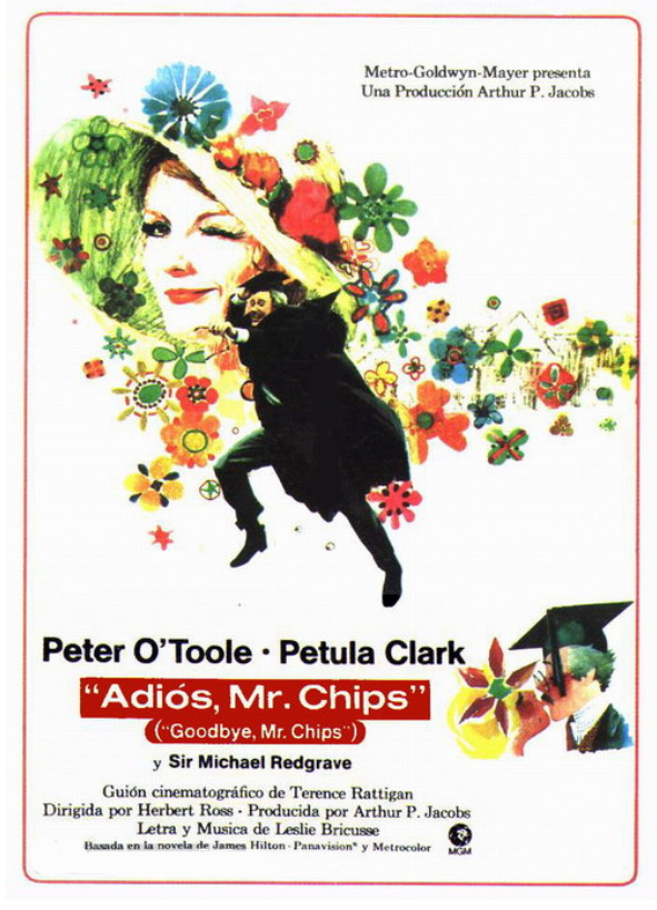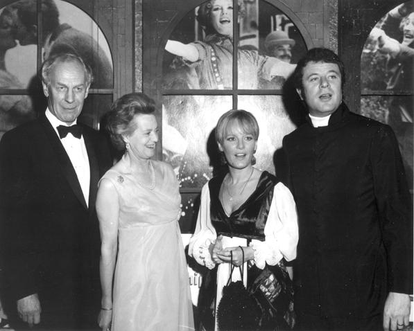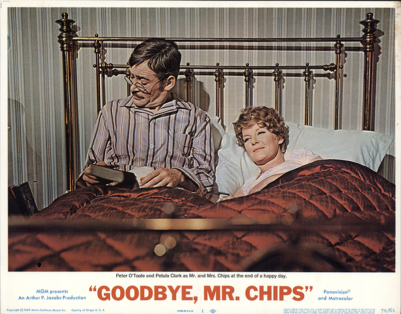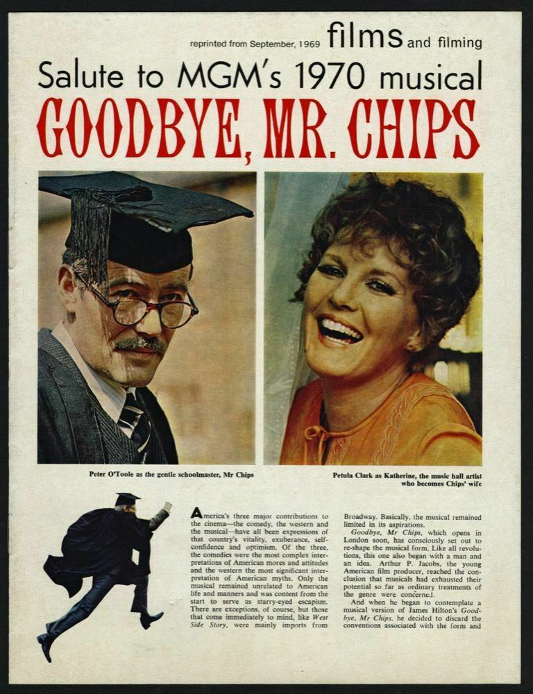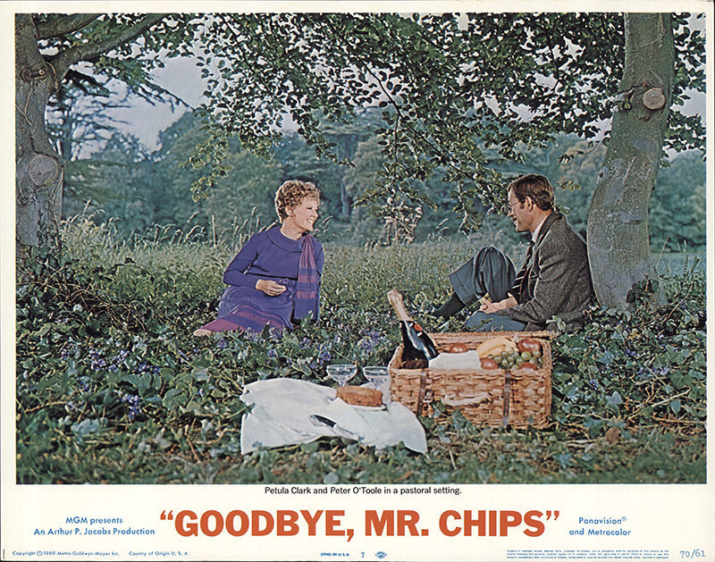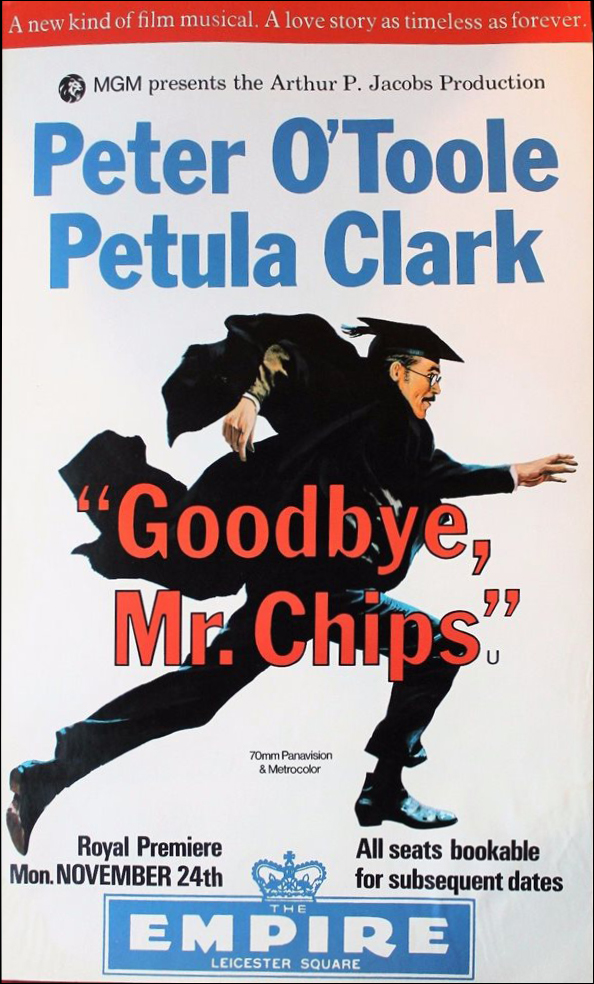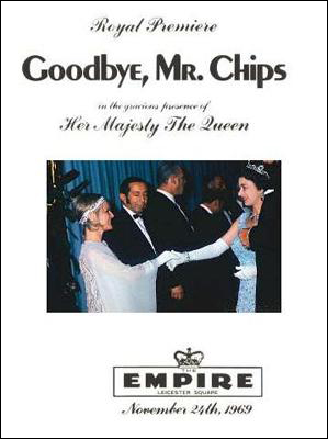 A glittering assembly of stars, celebrities and social leaders turned out Friday, November 7, 1969, for the West Coast premiere of MGM's Arthur P. Jacobs Production "Goodbye Mr. Chips" starring Peter O'Toole and Petula Clark. Event at the Fox Wilshire Theatre benefited the Motion Picture and Television Relief Fund and was highlighted by a post-premiere tented supper dance at which Les Brown and his Band of Renown entertained. "Goodbye Mr. Chips" notables in attendance were Miss Clark, producer Arthur P. Jacobs, composer Leslie Bricusse, screenwriter Terence Rattigan, music conductor-supervisior John Williams, Oscar-winning costume designer Julie Harris and headmaster Robert Powell from Sherborne School, England where much of the film was photographed under the direction of Herbert Ross. The 70mm Panavision motion picture features 12 new musical numbers by Bricusse and is adapted from James Hilton's classic love story.