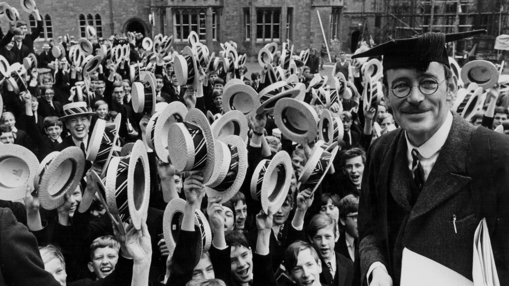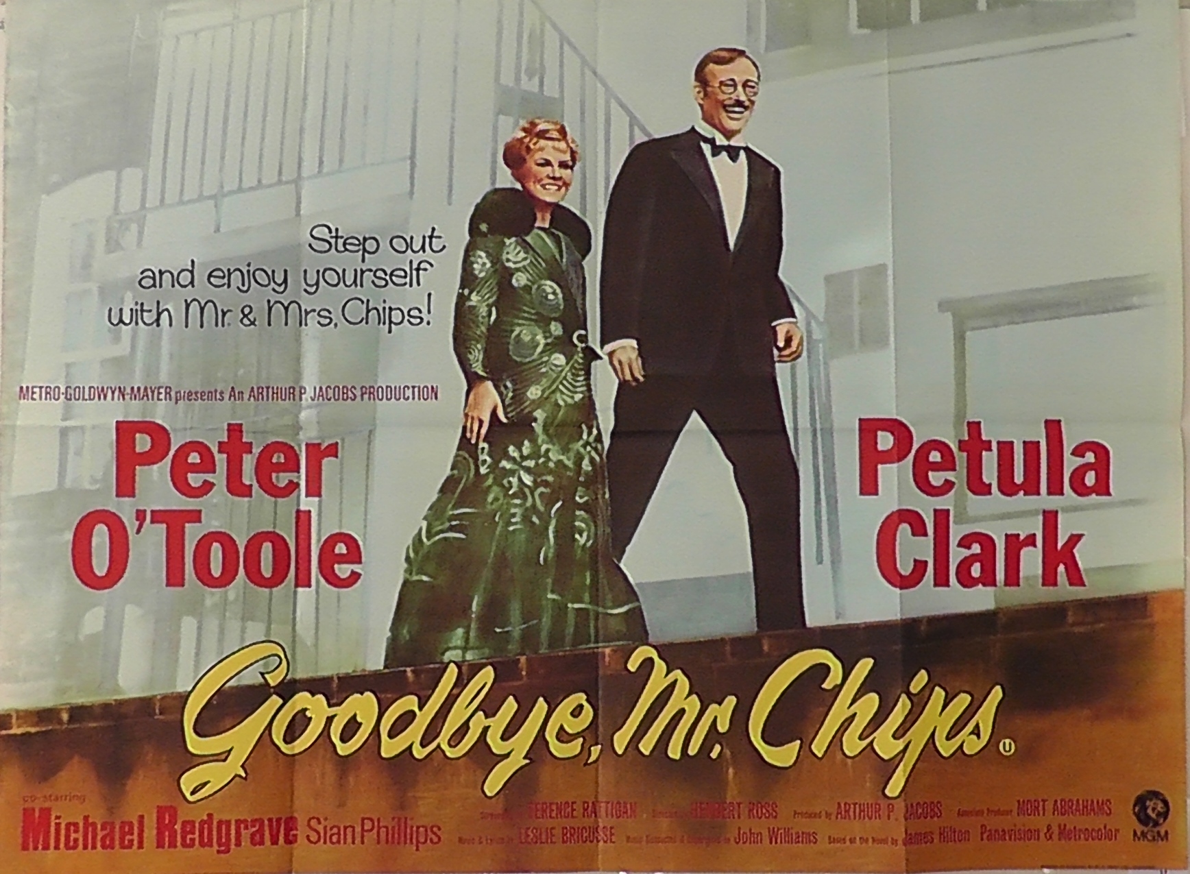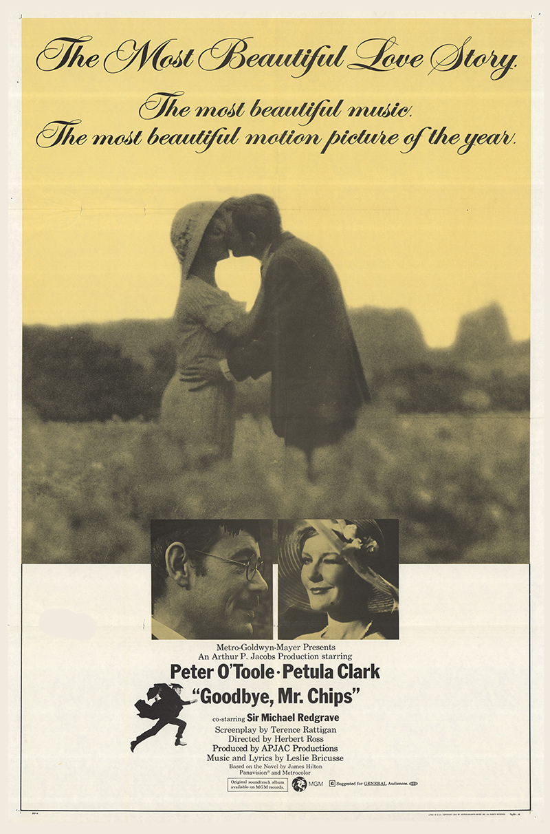 A glittering assembly of stars, celebrities and social leaders turned out Friday, November 7, 1969, for the West Coast premiere of MGM's Arthur P. Jacobs Production "Goodbye Mr. Chips" starring Peter O'Toole and Petula Clark. Event at the Fox Wilshire Theatre benefited the Motion Picture and Television Relief Fund and was highlighted by a post-premiere tented supper dance at which Les Brown and his Band of Renown entertained. "Goodbye Mr. Chips" notables in attendance were Miss Clark, producer Arthur P. Jacobs, composer Leslie Bricusse, screenwriter Terence Rattigan, music conductor-supervisior John Williams, Oscar-winning costume designer Julie Harris and headmaster Robert Powell from Sherborne School, England where much of the film was photographed under the direction of Herbert Ross. The 70mm Panavision motion picture features 12 new musical numbers by Bricusse and is adapted from James Hilton's classic love story.