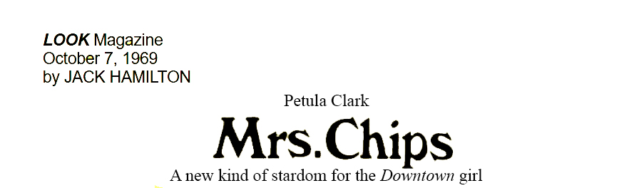 Petula spent her early years far from France in her mother's native Wales, where she spoke and sang in Welsh. Her stagestruck father, a male nurse, transferred his theater ambitions to his precocious child, and Petula was duly cooed over as a honey-haired. dimpled moppet in some 25 British films, and as a child singer. "I became a symbol of childhood during the war to a great many of the English people. After the war, they wanted to keep those memories intact, and they didn't want me to grow up or show a womanly bosom. I was a child until I was 25."