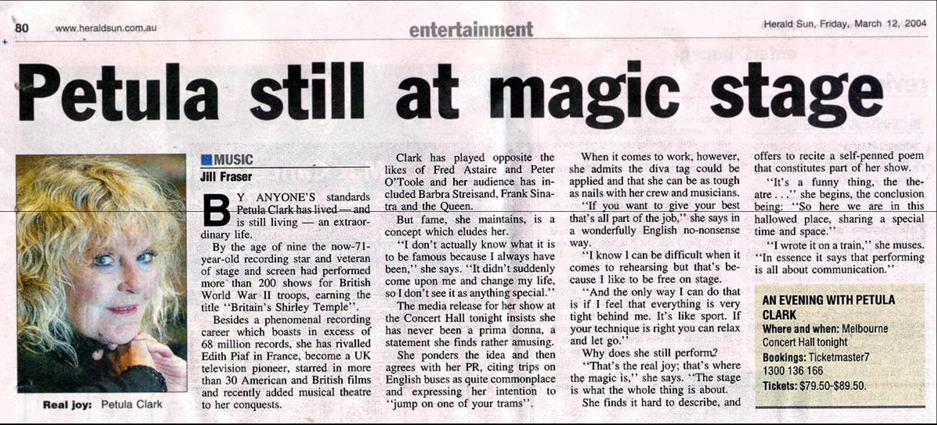Petula Clark plays the Melbourne Concert Hall on Friday, March 12.