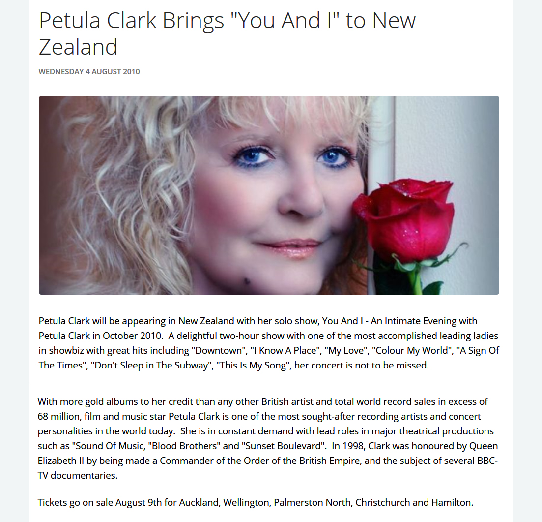 Petula Clark Plays Burswood Theatre tomorrow night, Book at Ticketek