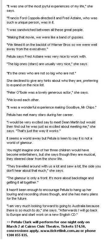 Grammy Award-winning UK star of stage and screen Petula Clark hits Cairns in March
