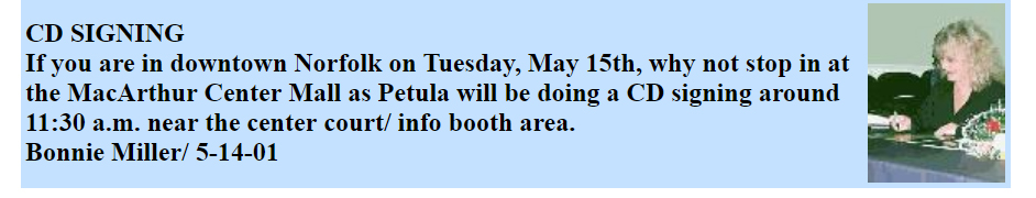 Guests: Petula--one of the 100. Excerpt of Downtown