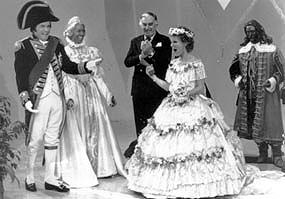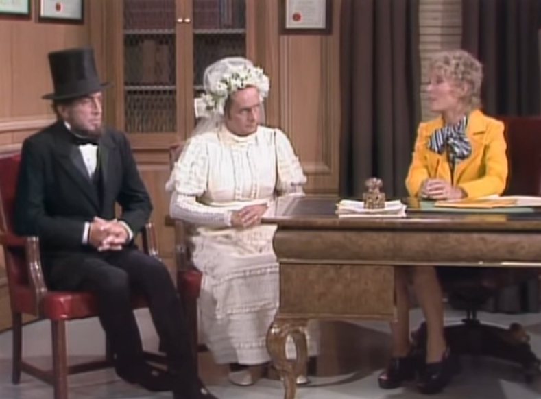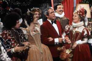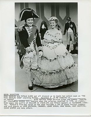 Mike Douglas and Petula Clark get all dresssed up to begin her co-host week on The Mike Douglas Show, starting Monday, December 8. With various other British kings and queens "looking on" (including George III, against whom the colonies revolted in 1776, at right,) Mike wears the outfit of William IV (1830-37) and Petula appears as Alexandra (1901-10.) Petula's five-day reign on the show includes a lot of great musical numbers, and guest stars such as John Davidson, Tavares, John Byner, Anne Meara, Andy Griffith, Edgar Winter and many others.