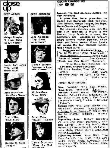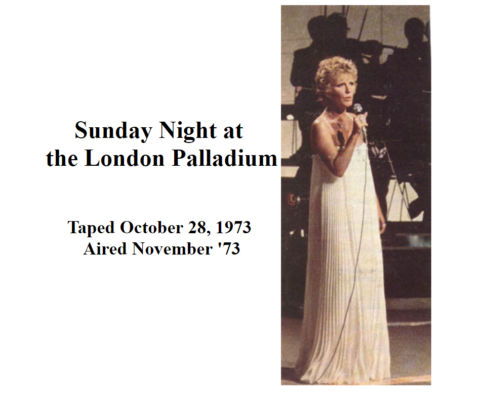Aquarius/Let The Sun Shine In (with Campbell), Beautiful, Burt Bacharach/Hal David medley with Campbell (Do You Know The Way To San Jose/Alfie/This Guy's In Love With You/The Look Of Love/I'll Never Fall In Love Again/What The World Needs Now Is Love), English medley w/ Campbell and Arte Johnson (Downtown/Call Me/My Love/Who Can I Turn To/Can't Buy Me Love/Eleanor Rigby/Ob-la-di, Ob-la-da)