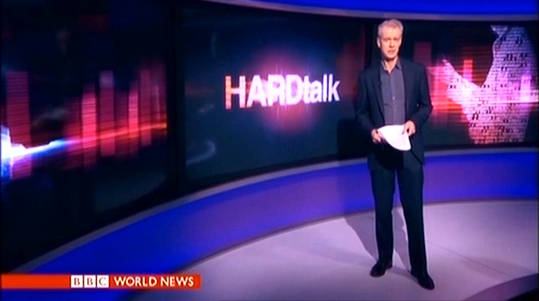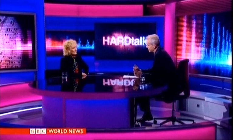 Half-hour interview (with Stephen Sackur) on the BBC News Channel, broadcast around the world on BBC World, in the series HARDTALK. (Its subjects are normally from such fields as politics, the environment, or finance. It's unusual to have featured someone from the field of entertainment.)