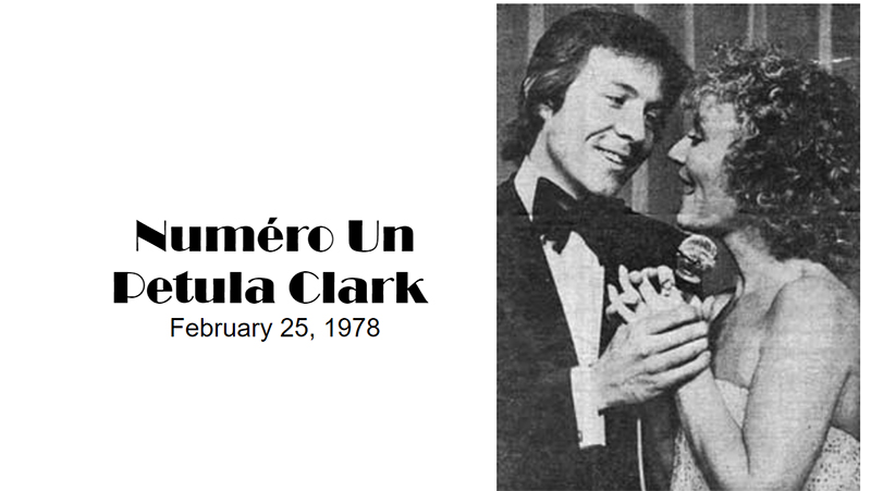 Petula, Rene Deshauteurs, Claude François, Farid Comme je t'aime mon amour, My Guy, C'est le refrain de ma vie, Downtown, Duet with Claude François: La gadoue/Il fait beau, Il fait bon/Chariot/Viens à la maison